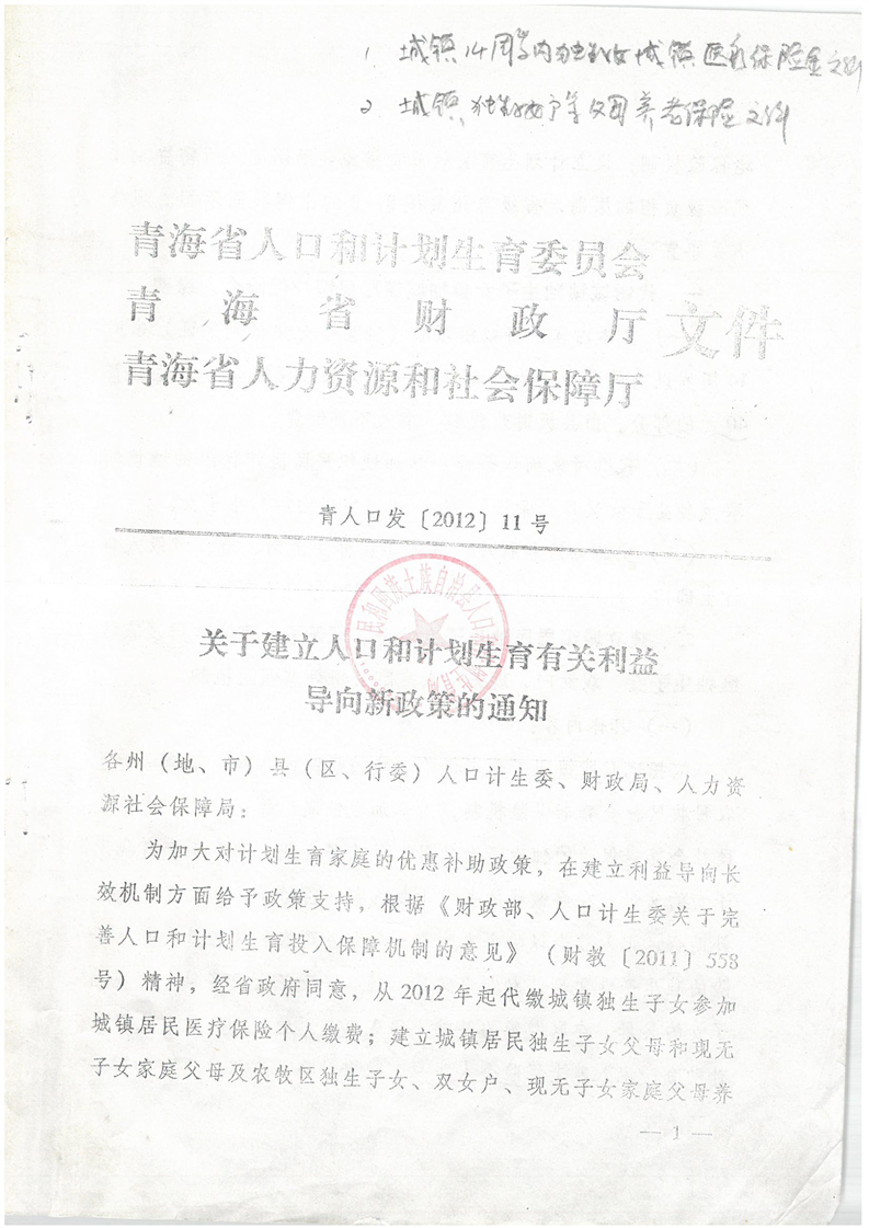 单位:青海省人口和计划生育委员会、省财政厅、省人力资源和社会保障厅