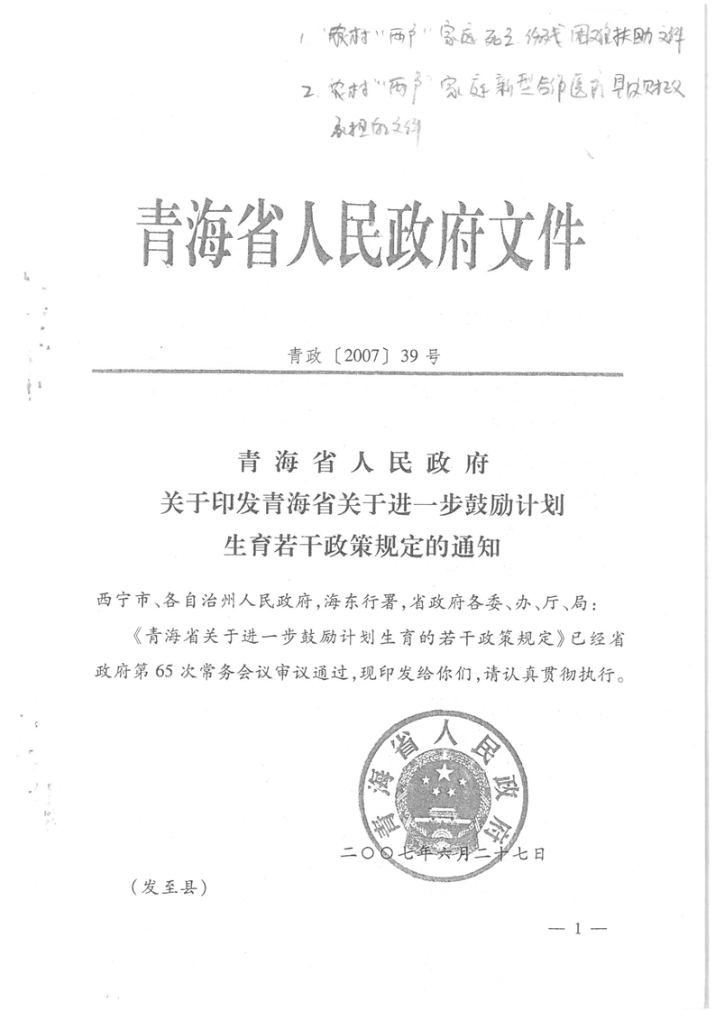 政策文号:青政〔2007〕39号