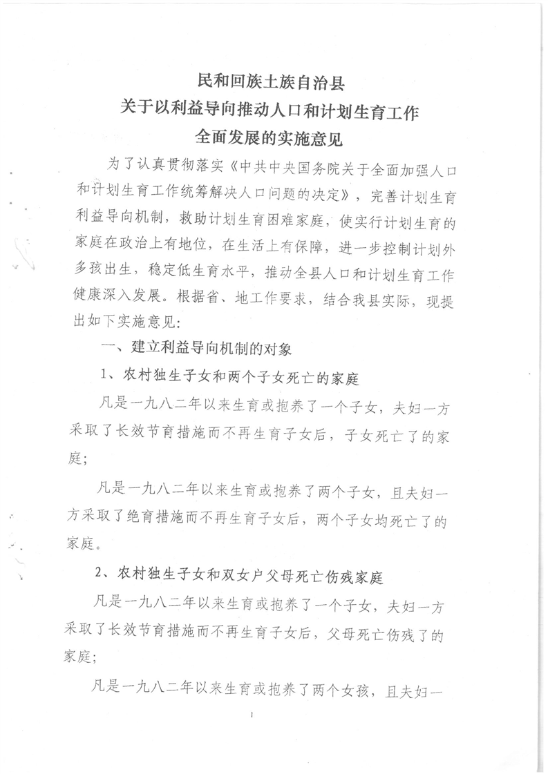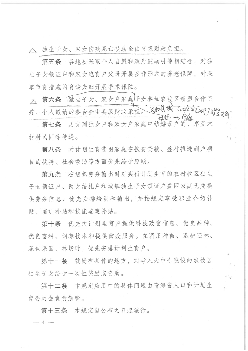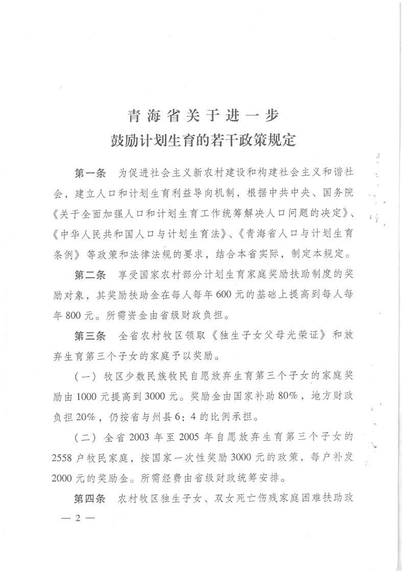 关于印发青海省关于进一步鼓励计划生育若干政策规定的通知
